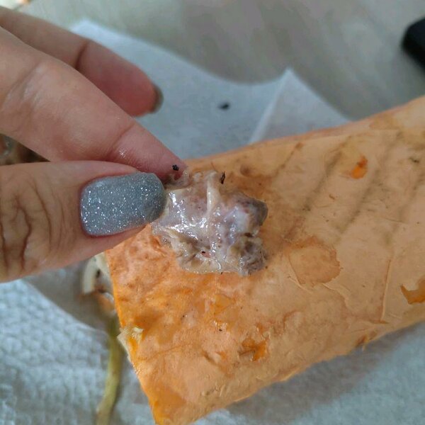 Сложно подобрать цензурные слова, когда в еде получаешь вот это 🤢 Неоднократно видела, что люди стоят за шаурмой. Решила на обед взять попробовать. С говядиной... В принципе, на фотографиях все видно. Одни жилы , которые не жуются, огромные куски, которые так же с сюрпризами. И косточка попалась ! Я почему-то даже не удивилась. Спасибо что зубы...
